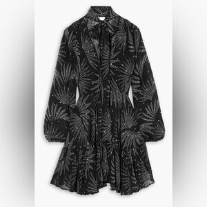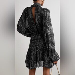 NEW EVARAE Lavinia Tie-neck Fil Coupé Silk-blend Mini Dress Sz 8 Black Gold