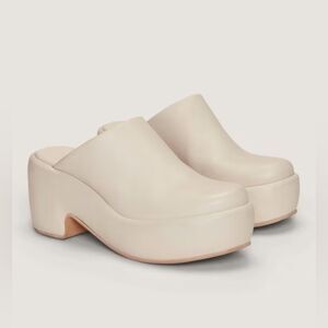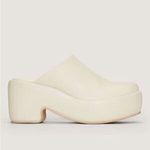 The Puffa Clog is the newest addition to leather our mule family. Featuring a leather covered platform wedge and rubber outsole, the wedge is covered with padding—perfect for all-day wearability.