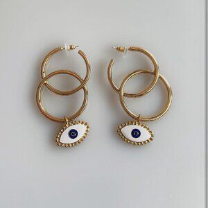 NEW EVIL EYE DOUBLE HOOP EARRINGS