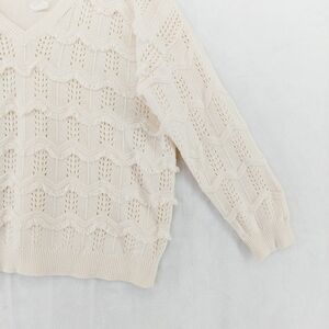 NEW EVRI Knit Off White Cotton Acrylic Blend V Neck Fringe Trip Sweater P2997