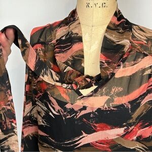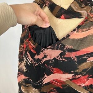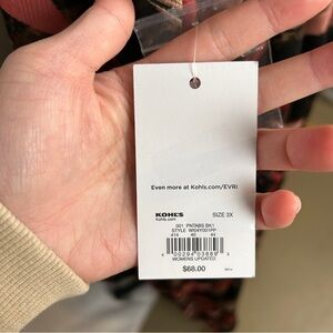 NEW EVRI Multicolor Black Fit & Flare Midi Long Sleeve Dress with Bow Tie Plus Size 3X