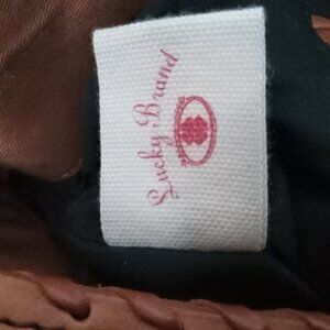 NEW, EX LARGE LUCKY BRAND TOTE (NEW W/O TAGS). LEATHER ON THE STRAP AT THE TOP AND ON THE BOTTOM.