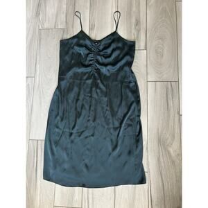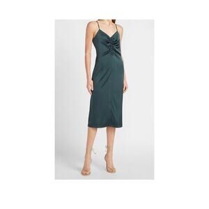 NEW EXPRESS $88 Forest Green Satin Ruched Front Slip Dress SZ XL JW
