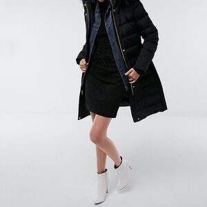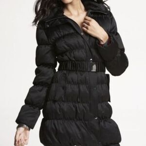 NEW EXPRESS $228 Black LONG DOWN FILLED Belted Smocked PUFFER COAT