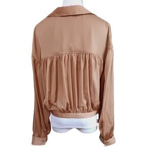 This is a new without tags (has button packet tag only) Express blouse in a beautiful beige/tan color. It features a flattering tie waist design.