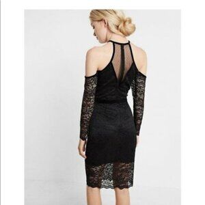 NEW EXPRESS Lace Velvet Piped Cold Shoulder Sheath Dress Size 0
