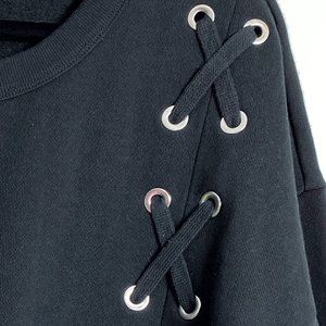 EXPRESS ONE ELEVEN BLACK LACE UP SWEATSHIRT TOP