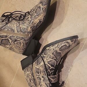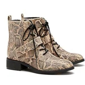 NEW! EXPRESS Vegan Leather Snakeskin Animal Print Lace Up Boots 9.