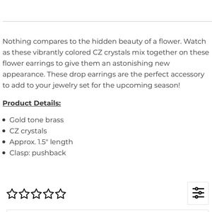 Nothing compares to the hidden beauty of a flower. Watch as these vibrantly colored CZ crystals mix together on these flower earrings to give them an astonishing new appearance. These drop earrings are the perfect accessory to add to your jewelry set for the upcoming season!