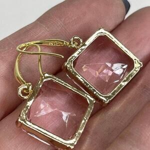 NEW Earrings 1.5" Pink Faceted Glass Paperclip Dangle Drop Trendy Jewelry AU24