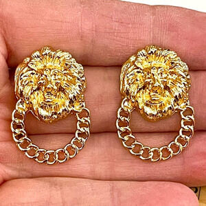 GORGEOUS Lion head door knocker earrings in gold tone. We also have the matching necklace listed!!! Please see photos for close ups & measurements. As always, if you have any questions, please don't hesitate to ask & THANKS SO MUCH for stopping by BunnyBlvd!!!