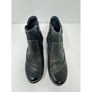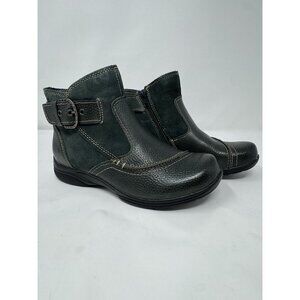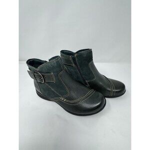 The NEW Earth Origins Dayton Ankle Boots Booties Shoes in women's size 7.5 are a stylish and comfortable option for any casual occasion. Featuring a solid green color, round toe, and low wedge heel, these boots are perfect for the summer, fall, and spring seasons. Made with leather uppers, fabric lining, and arch support, these boots offer both durability and comfort. The ankle height and zip closure add convenience to these trendy booties, making them a versatile addition to any wardrobe.
