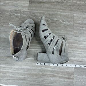 NEW Earthies Saletto Pale Gray Suede Back Zip Square Pump Heels Womens Size 10