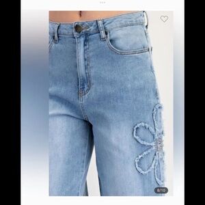 Brand New Easel Embroidered Flower Patch Mineral Washed Stretch Jeans