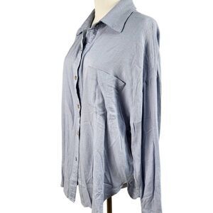 NEW Easel Oversized Small Classic Linen Blend Shirt Light Blue Denim Long Sleeve