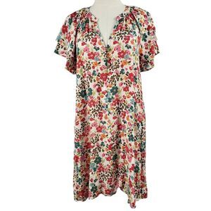 NEW Easel Oversized Small Multicolor Floral Mini Dress Pockets Flutter Sleeves