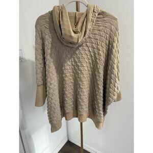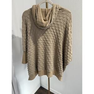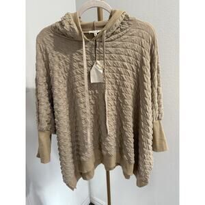 NEW Easel Puff Textured Hacci Knit Teddy Pullover 1/4 sleeve Hoodie Sand Women S