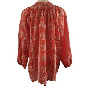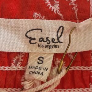 NEW Easel Small Red Tunic Blouse All Cotton Pullover White Eyelet Smocked BOHO