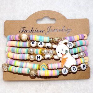 NEW Easter Gold Stretch Bracelet Set Rabbit Egg Charms