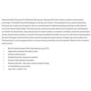 NEW Eastport Pro Defender Gray Laptop Backpack Padded Straps 18.5 ×12.5×7.5