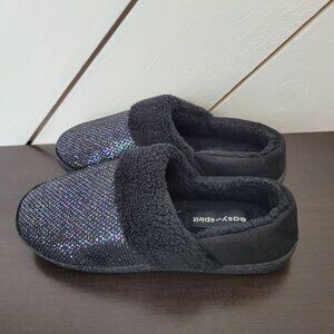 Easy Spirit Womens Size 5-6 S Faux Fur Lined Slip-On Slippers Sparkle Black