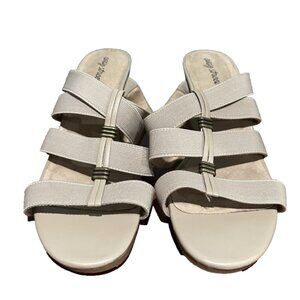 NEW Easy Street FLEX Women's 12 WIDE Slip on Block Heel Open Toe Tan Sandals