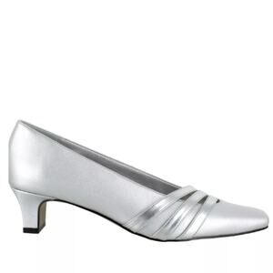 NEW Easy Street Squared Toe Slip-On Pumps Entice Silver Satin Size 9.5WW