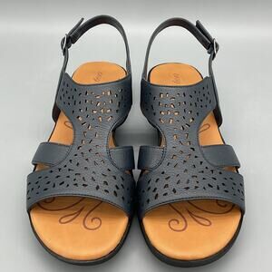 NEW Easy Street Women Bolt Decorative Cutout Flat Sandal Dark Navy Size 7M