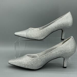 NEW Easy Street Women’s Chiffon Glitter Pumps Silver Size 8.5WW