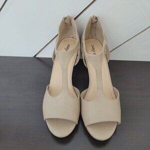 NEW Easy Street Womens Nude Pearlized Flash Women's 8.5M T-Strap Heels 5CT