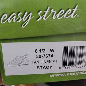 NEW Easy Street Womens Tan Linen Stacy Super Flex Wedge Slingback Sandals 8.5