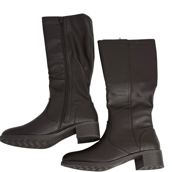 NEW Easy Street Women's knee high brown boots size 9.5 faux leather stretch boot