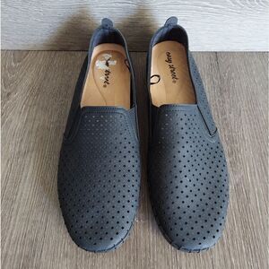 NEW Easy Street Womens Fresh Black Faux Leather Perforated Loafers Shoes 9W