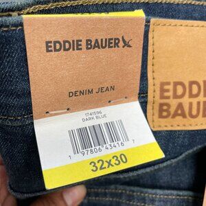 NEW Eddie Bauer Men's 32x30 Straight Fit Denim Jeans Dark Blue Stretchable