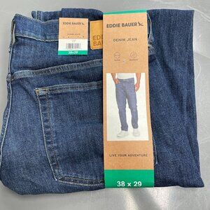 NEW Eddie Bauer Men's 38x29 Straight Fit Denim Jeans Blue Cotton Blend Stretch