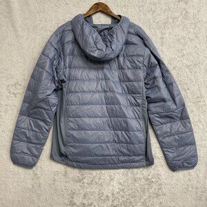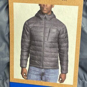 NEW Eddie Bauer Mens L Gray Down Puffer Jacket With Hood Large Lightweight Warm