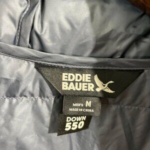 NEW Eddie Bauer Mens M Hooded Down Jacket 550 Fill Power Gray Lightweight & Warm