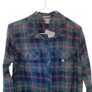 NEW Eddie Bauer Women’s Long Sleeve Button up Plaid Blouse Classic Fit Large