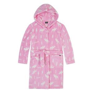 * Robe: moose all over print hooded plush robe with wrap tie