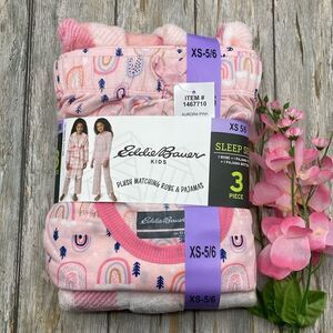 NEW! Eddie Bauer Youth 3 piece PJ Set- LS Top, Pant and Robe, Snow