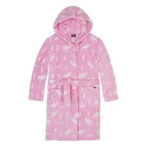 * Robe: moose all over print hooded plush robe with wrap tie