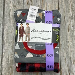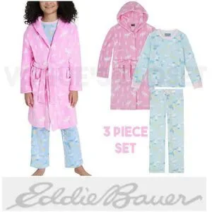 NEW! Eddie Bauer Youth 3 piece PJ Set- LS Top, Pant and Robe, Snow