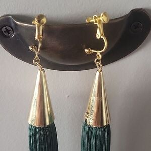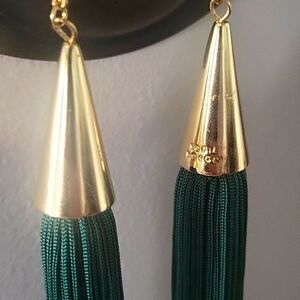NEW Eddie Borgo 12K Gold Green Silk Tassel Dangle Chandelier Cone Earring Fringe
