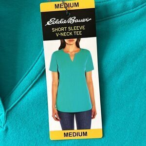 NEW Eddie Bauer Short Sleeve Turquoise V Neck Tee