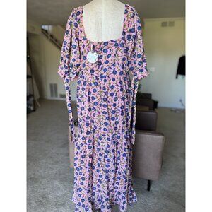 NEW Eddy Barbara Square Neck Puff Sleeve Long Dress Floral Size 14 NWT $378