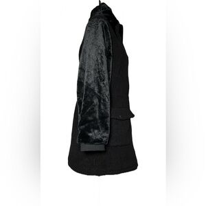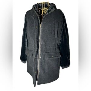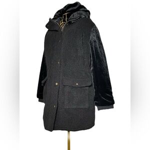 NEW Eden Society Sherpa Black Coat, Faux Fur Sleeves & Hood, Zipper, Pockets, M