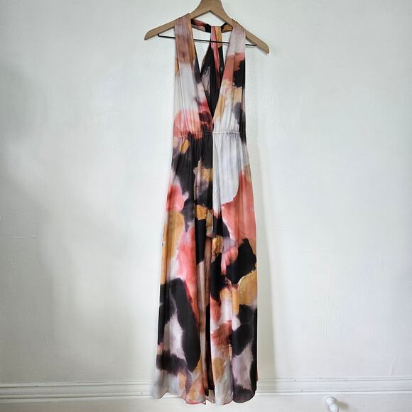 NEW Edition Asos Watercolor Print Satin Halter Maxi Dress 4 Pink Black Tan NWT