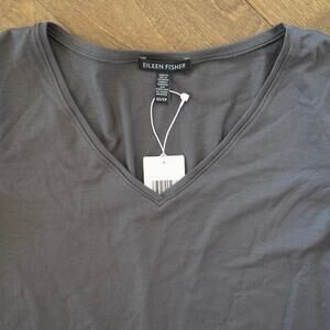NEW Eileen Fisher 3/4 Sleeve V Neck Pullover Dress Gray Womens Size XS