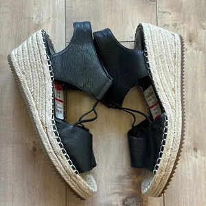 NEW Eileen Fisher Black Leather Agnes Espadrille Wedge Sandal Women's Size 11
