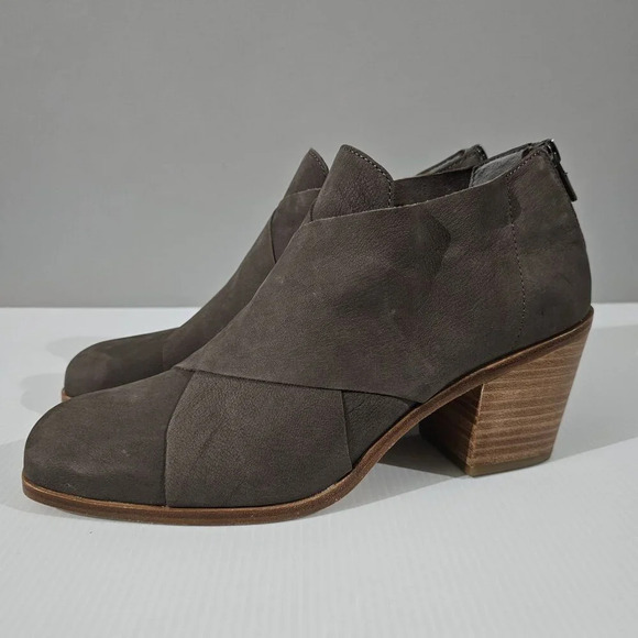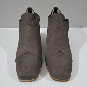 NEW Eileen Fisher Ember Low Ankle Bootie Women 10 Taupe Brown Leather Block Heel